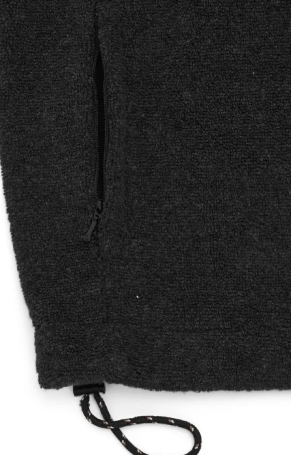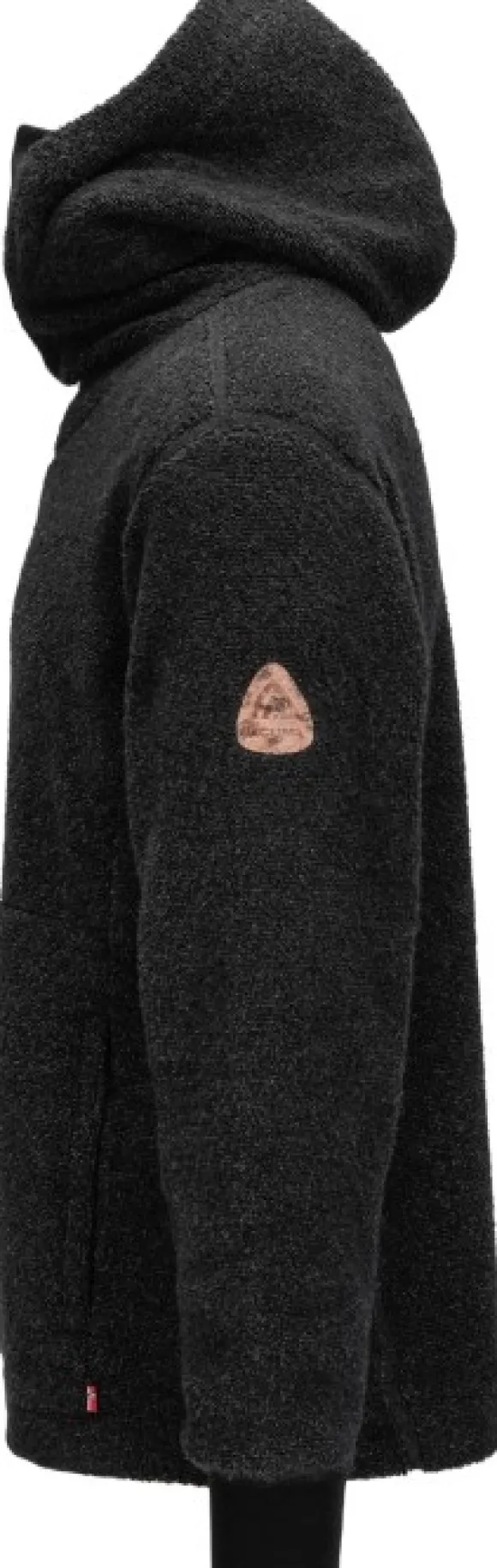 Hupussa on sisäänommeltu korkea kaulus. Suuri etutasku sivuvetoketjulla sivusäädöllä. Sisäpuoli harjattua pehmeää villaa.