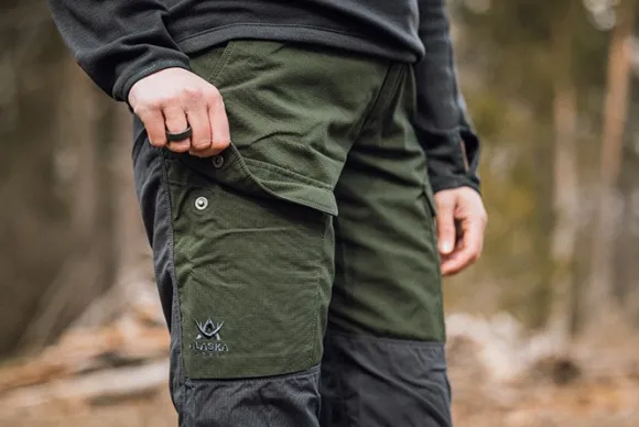 Hiljaiset ja kevyet Alaska Comfort-housut soveltuvat erinomaisesti sekä metsästykseen että vapaa-aikaan. Valmistettu erittäin kestävästä polyesteripuuvillasta. Housuissa PFC-vapaa vettä- ja likaa hylkivä käsittely. Säädettävä vyötärö, avoimet sivutaskut sekä paljetaskut reisissä.