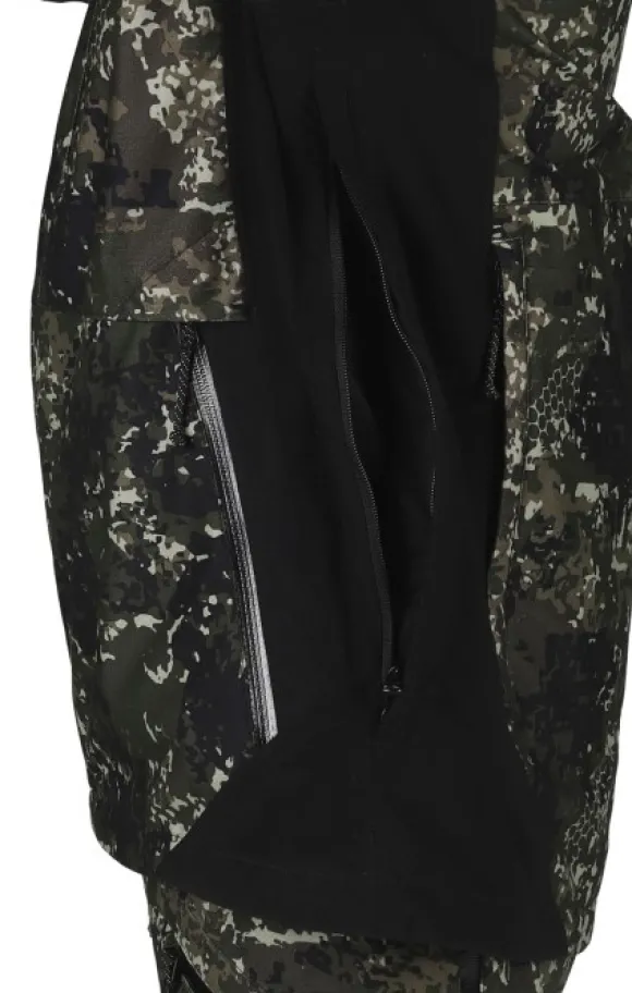 Takki on hengittävä ja siinä on tuuletusvetoketjut, jotka varmistavat mukavuuden pitkien metsästyspassien aikana. Taskut on strategisesti sijoitettu ja suojattu sateelta vettä hylkivillä vetoketjuilla.