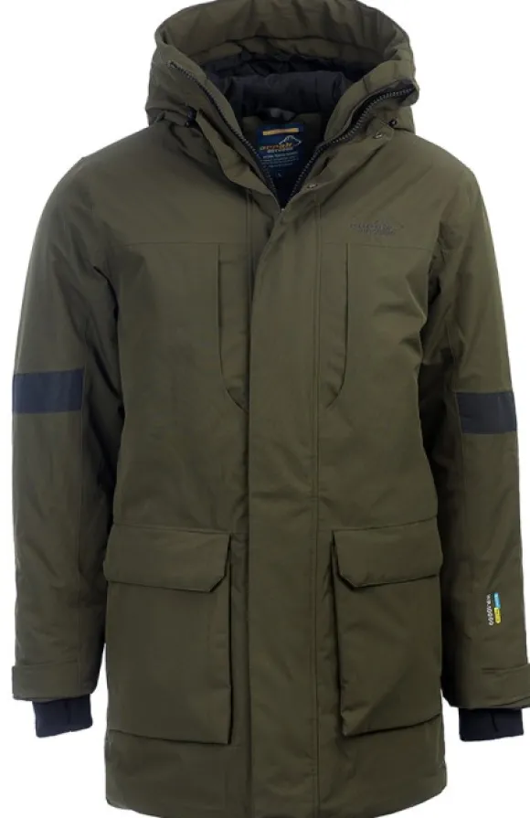 Mukava ja lämmin parkatakki kylmiin päiviin. Takissa on joustava ulkokangas 100 % polyamidia ja jopa 10 000 mm vesipilariarvo. Takissa on täytteenä 100 % synteettistä untuvaa ja siinä on heijastimet hihoissa ja selässä.