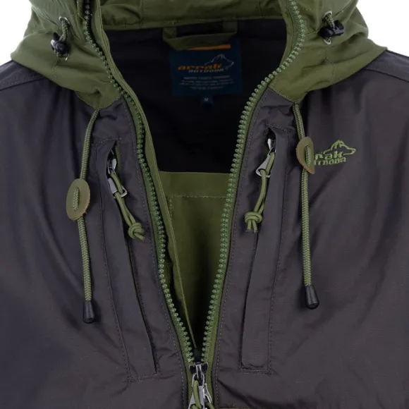Kevyt miesten anorakki monipuoliseen käyttöön. Valmistettu kyllästetystä polyesterin ja puuvillan sekoituksesta. Materiaali on vettä hylkivää ja se voidaan helposti kyllästää tarvittaessa. Vetoketjut sivulla helpottavat pukemista ja riisumista.