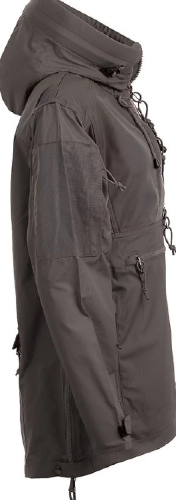 Anorakissa on suuri säädettävä huppu ja kaksisuuntainen vetoketju edessä. Hihansuut ovat säädettävissä tarranauhalla ja haararemmi pitää anorakin paikoillaan haastavissa olosuhteissa.