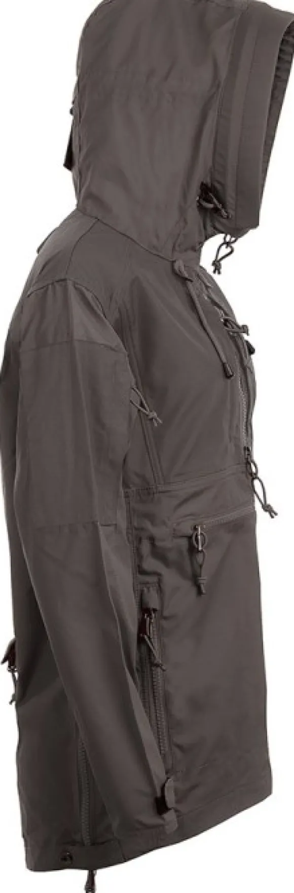 Anorakissa on useita käytännöllisiä taskuja, kuten suuri vetoketjullinen takatasku ja suuri vetoketjullinen kengurutasku. Vetoketjulliset käsi- ja hihataskut.