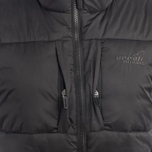 Molemmissa etutaskuissa ja liivin kahdessa piilossa olevassa rintataskussa on vetoketjut, ja sisäpuolella on kaksi avointa sisätaskua. Takaosan tunnelitaskussa on myös vetoketju.