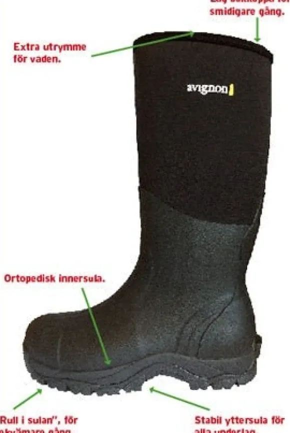 Avignon Ridge High -lämpösaappaissa on korkea varsi sekä mukavasti tilaa jalalle. Saappaat ovat erittäin miellyttävät kävellessä, ja niissä jalkasi pysyvät lämpimänä kylmälläkin pakkaskelillä. Memory Foam -pohjallinen muotoutuu oman jalan mukaiseksi, ja se on lisäksi päällystetty lisälämpöä tuovalla villahuovalla. Kaksikerroksisen pohjan välipohja on kylmää torjuva EVA ja ulkopohja pitävää kumia. Takaosan kick-off-ominaisuuden ansiosta saappaat on helppo potkaista pois jaloista. Pohjan kuviointi ehkäisee liukastumista ja antaa hyvän pidon kaikenlaisessa maastossa. Avignon Ridgen Comfort Rating eli pakkasensieto on jopa -60 astetta.