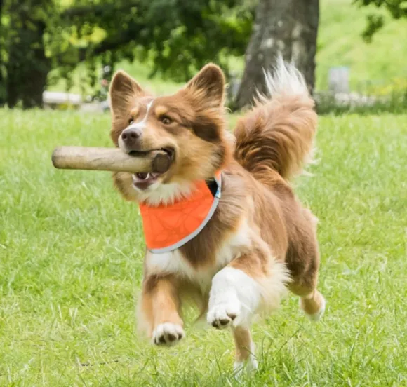 Back On Trackin Draco on heijastava koiran huomiohuivi. Se on erinomainen lisävaruste lenkille tai esimerkiksi metsäretkelle. Lisäksi se soveltuu pitkäkarvaisille koirille, joilla heijastavat kaulapannat tai valjaat eivät näy kunnolla. Huivi on valmistettu ohuesta, hyvin hengittävästä materiaalista, ja siinä on yksinkertainen tarrakiinnitys. Materiaalissa hyödynnetty Iontex®-teknologia heijastaa koiran kehon lämpöä ja voi edistää hyvää liikkuvuutta niskassa. Oranssissa värissä on heijastava kuvio, ja huivin ympärillä heijastavia yksityiskohtia.