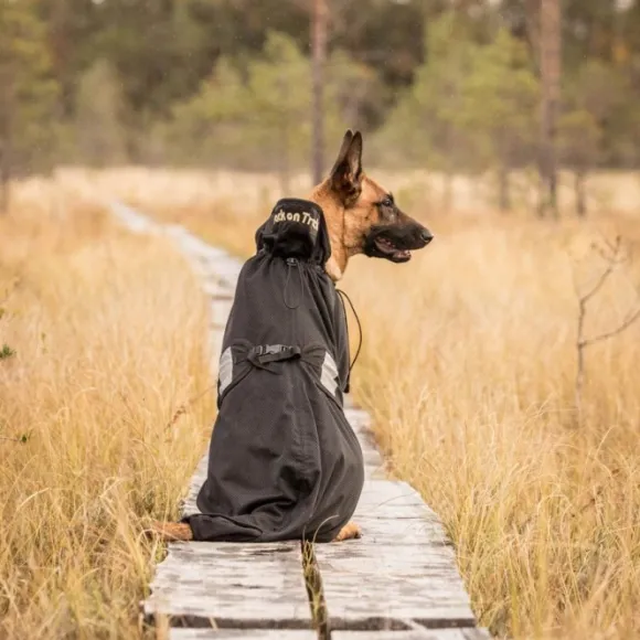 Edessä ja niskassa on erinomaiset säätömahdollisuudet, jotka takaavat hyvän istuvuuden. Takana on joustavat lenkit takajaloille, niskassa aukko taluttimelle ja takana vetoketjullinen aukko hännälle. Sivuilla olevat heijastimet parantavat näkyvyyttä pimeällä.
