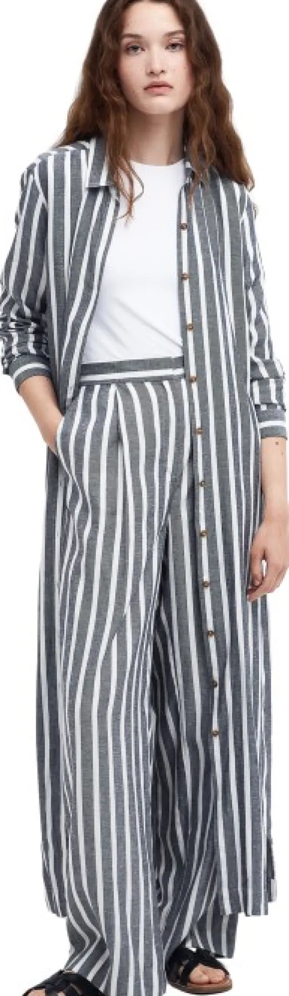 Korosta kesäasuasi Barbour Annalise Striped -paitamekolla. Tässä ylellisestä kankaasta valmistetussa maximekossa on klassinen raidallinen muotoilu, sivusaumataskut sekä merkkinapit edessä ja hihansuissa.