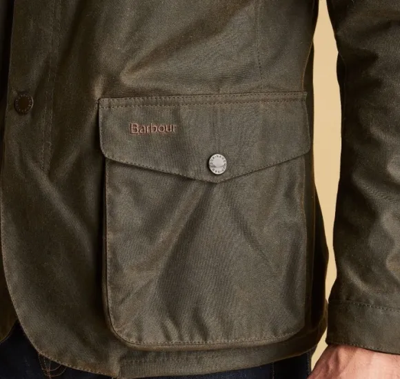 Barbourin vahattu puuvillakangas kestää erittäin hyvin tuulta, vettä ja lunta. Täydellinen takki huonolla säällä, jonka voi tarvittaessa vahata uudelleen vedenpitävyyden lisäämiseksi. Tämä materiaali vain paranee iän myötä!