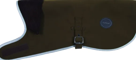 Barbour Waterproof Dog Coat on käytännöllinen ja vedenkestävä koiran takki. Takissa on heijastavia yksityiskohtia koirasi näkyvyyden parantamiseksi pimeällä. Takki on vuorattu tartaani-kuosisella, 100 % puuvillakankaalla. Pehmeä vakosamettikaulus ja Barbourin logo sivulla. Takki kiinnitetään soljellisella hihnalla vatsan alta ja tarranauhalla edestä. Takissa on aukko edessä, josta taluttimen voi kiinnittää valjaisiin (myydään erikseen).
