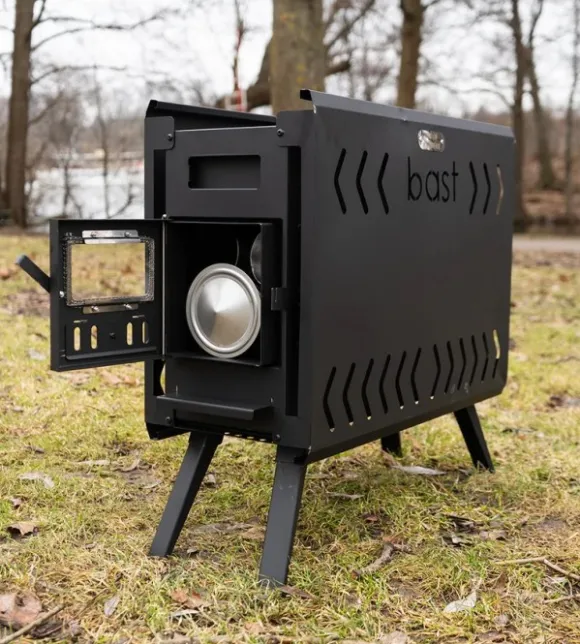 Pop-up-teltta on helppo pystyttää alle kahdessa minuutissa vetämällä teltan viisi sivua voimakkaasti auki. Ei vaivalloista telttakeppien asentamista. Nosta kamiina sisään, avaa jalat ja asenna savupiippu – sitten tarvitsee vain sytyttää tuli ja nauttia.