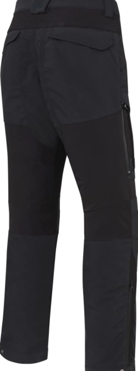Muotoillut polvet sisältävät polvisuojataskut, jotka ovat käytettävissä ulkopuolelta, ja lisäventilaatiota tarjoavat vetoketjulliset aukot sivuilla.