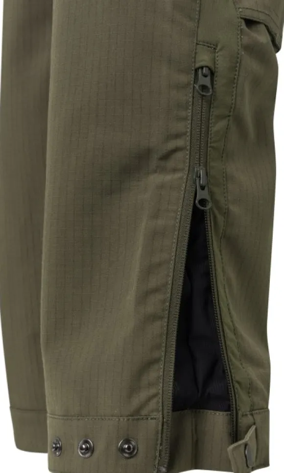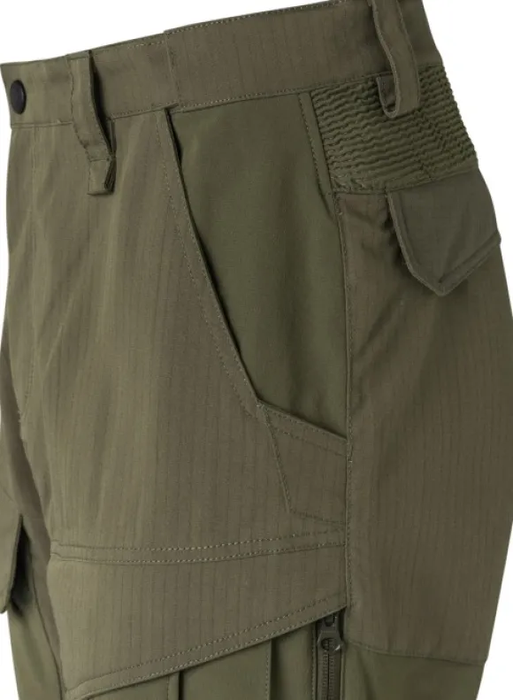 Flanker-housuissa on normaali istuvuus, ja niissä on sivutaskut vahvikkeilla veitselle, tilavat reisitaskut läpällä ja YKK-vetoketjulla sekä takataskut tarrakiinnityksellä.