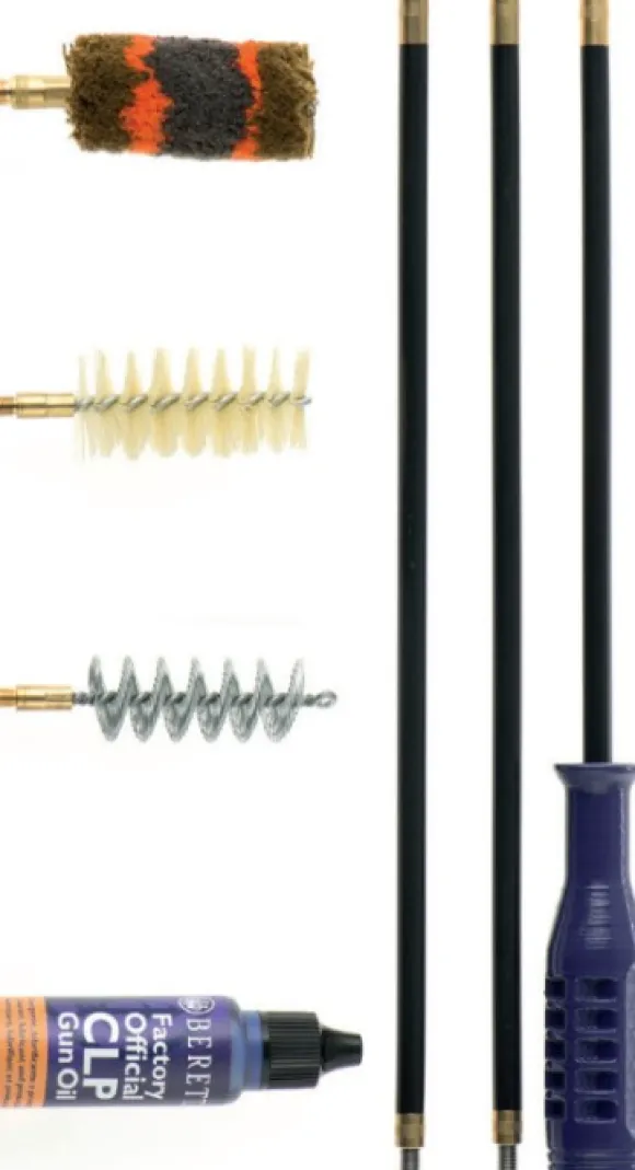 Beretta CK shotgun ga 12 on 12-kaliiberisen kiväärin puhdistussarja. Setissä on kolmiosainen teräspuikko, 3 kpl harjoja sekä öljypullo.