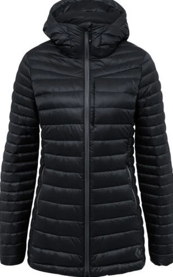 Black Diamond Access Down Parka on kevyt ja lämmin untuvatakki. Pidempi malli, joka lämmittää mukavasti. Takissa on kaksi käsitaskua sekä rintatasku, kaikki vetoketjullisia. Hihansuissa on joustavat reunukset, jotka estävät kylmyyden pääsyn sisäpuolelle. Päällyskangas on kevyttä ripstop nailon -materiaalia. Täytteenä käytetyn hanhen untuvan fill power -arvo on 700, ja se on käsitelty kosteutta vastaan Allied HyperDRY™ -menetelmällä.