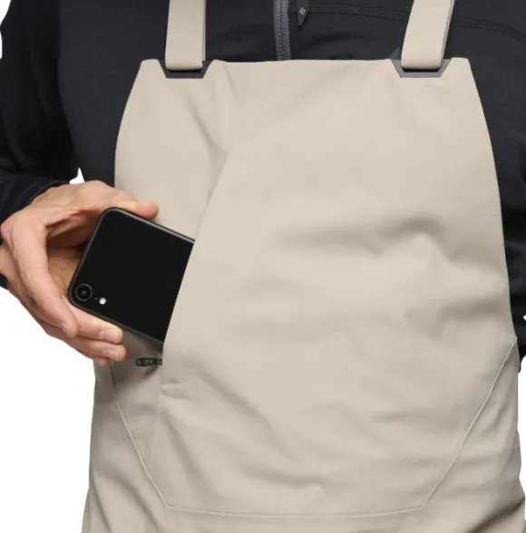 Matala profiili, säädettävät henkselit ja joustava takapaneeli tekevät haalarin pukemisesta helppoa. Ominaisuuksiin kuuluvat reisitaskut, rintatasku sekä sivuaukot, joiden kautta voit vapauttaa ylimääräisen lämmön nousujen aikana.