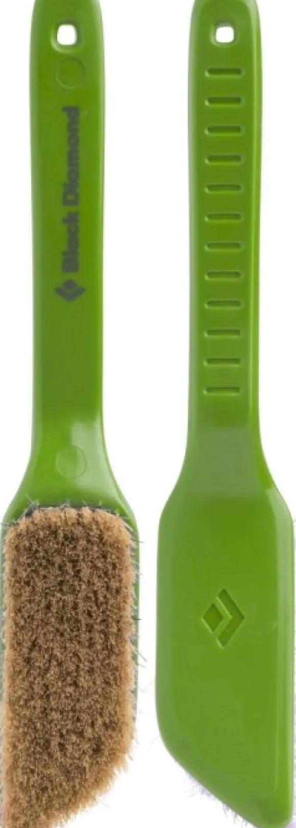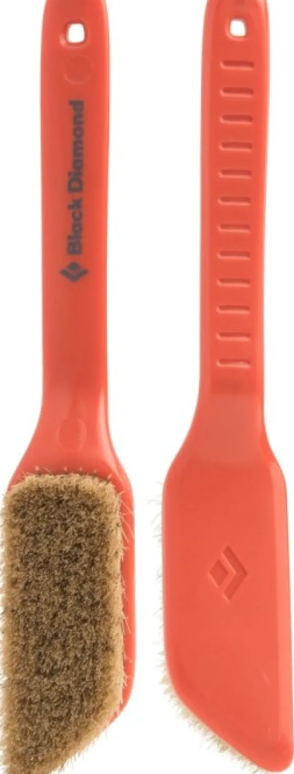 Black Diamondin oteharja kiipeilyyn. Harjassa on ergonominen kahva, joten rystyset eivät kolahda seinään. Kavennetun pään ansiosta harjalla pääsee myös nurkkiin ja muihin ahtaisiin koloihin. Harjakset on valmistettu villisian karvoista, mikä tekee harjasta kestävän ja lujan työvälineen liidun ja lian puhdistamiseen. Harja sopii hyvin Mondo-mankkapussin harjapidikkeeseen. Saatavana neljää eri väriä.