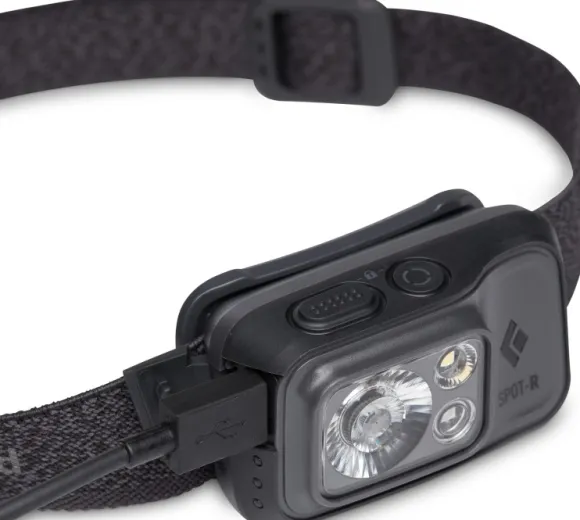 Black Diamondin vedenpitävä otsalamppu Spot 400-R sopii sinulle, joka tarvitset monipuolista suorituskykyä ja samalla arvostat pientä ja kompaktia kokoa. Kompakti lamppu saa virtansa sisäänrakennetusta 1500 mAh -litiumakusta, jossa on micro-USB-latausportti. Integroitu näyttö näyttää % jäljellä olevasta tehosta.