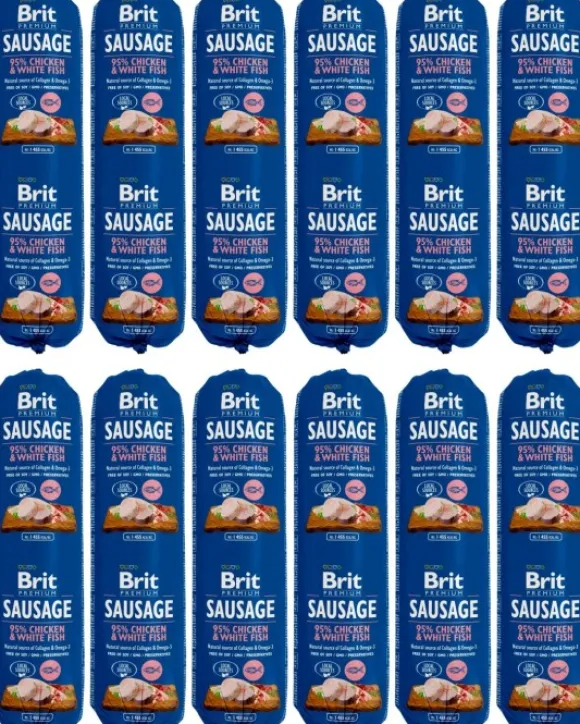 Kanaa ja valkoista kalaa sisältävä Brit Sausage on herkullinen yhdistelmä lihaa ja sisäelimiä kunnon paloina pehmeässä pateessa. Sisältää runsaasti eläinproteiineja ja siten tukee sekä parantaa lemmikkisi ruoansulatusta. Britt koiranmakkara on täysruokaa aikuisille koirille, mutta käy myös kuivamuonan rinnalle.