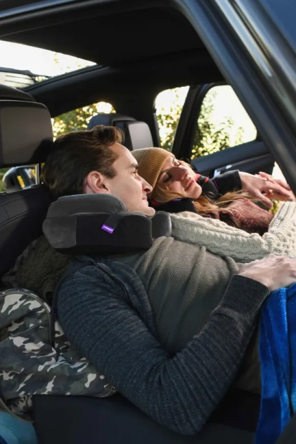 Toisin kuin muut matkatyynyt, tässä muistivaahtotyynyssä on säädettävä (maailmanlaajuisesti patenttia haettu) leukahihna, kohotetut sivutuet ja litteä selkämalli, joka tukee päätäsi ja niskaasi kaikissa asennoissa tarjoten 360° mukavuuden.
