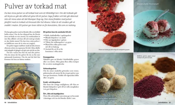 Kirja sisältää reseptejä energiakekseihin, liemiin ja kotitekoiseen kuivalihaan. Kirjassa kirjailija Eric Tornblad tiivistää yli viidentoista vuoden kokemuksen ja satojen tuntien kuivattujen ruokien kokeilun tulokset. Eric on myös kirjoittanut kirjat Fjällmat, Snabblagat på tur ja Eldmat.