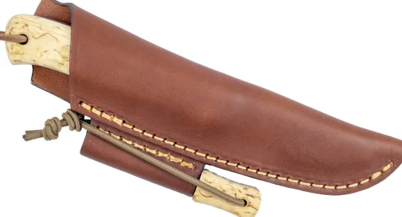 Mukana tulee tyylikäs tuppi eurooppalaisesta kasviparkitusta nahasta. Tupessa on oma paikkansa kipinäraudalle.