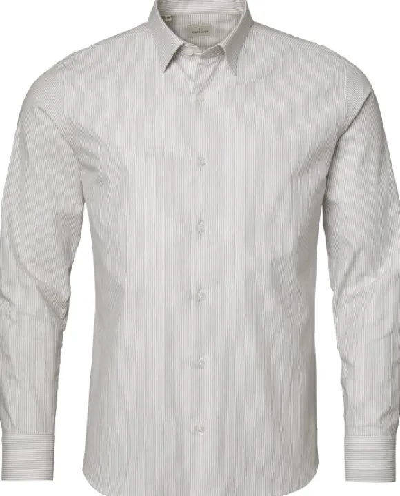 Chevalierin Abisko-paita on istuva ja hieman kapeampi. Kangas on kudottu 100 % puuvillalla, jonka pohjaväri on valkoinen. Paidassa on taidokkaat saumat, pehmeästi pyöristetty helma ja helmiäisnapit.