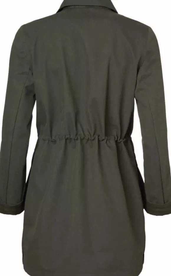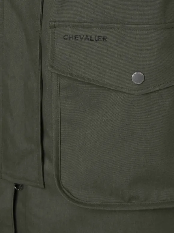 Monipuolista Chevalier May -takkia voi käyttää lähes vuoden ympäri. Takissa on pitkä malli, joka ulottuu reisien yli, ja sivuilla olevat nepparit mahdollistavat hyvän liikkuvuuden. Leikkaus on suora, ja vyötäröä voi säätää. Takissa on monia käytännöllisiä yksityiskohtia. Kangas on veden- ja tuulenpitävää, ja siinä on kaunis, harjattu pinta. Saumat on osittain teipattu, jotta kosteus pysyy paremmin loitolla. Myrskysuojakaulus suojaa hurjemmaltakin säältä. Kaksisuuntainen YKK-vetoketju lisää käyttömukavuutta, ja edessä on kaksi tilavaa paljetaskua.