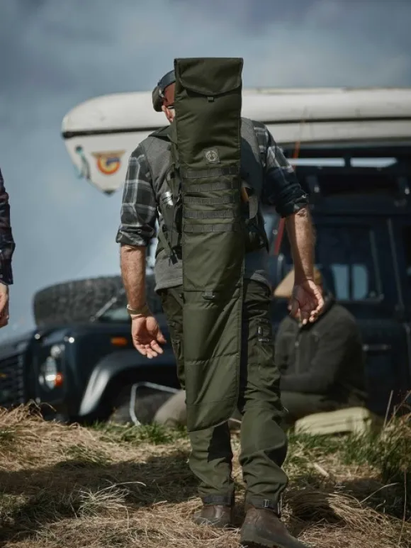 Ranger Rifle Case on vahvasta kierrätetystä polyamidikankaasta valmistettu kiväärilaukku, joka on myös pehmustettu. Pituutta voidaan säätää kiväärin pituuden mukaan. Laukussa on irrotettava kansiläppä. Kiväärilaukku suljetaan näppärästi vetoketjulla ja hihnat pitävät kiväärin paikallaan. Kiväärilaukku on varustettu PALS-järjestelmään sovitetuilla hihnoilla, joten saat siihen kiinnitettyä Ranger Day Pack -repun. Kiväärilaukussa on sekä kahva että irrotettava olkahihna eri kantotapoja varten.