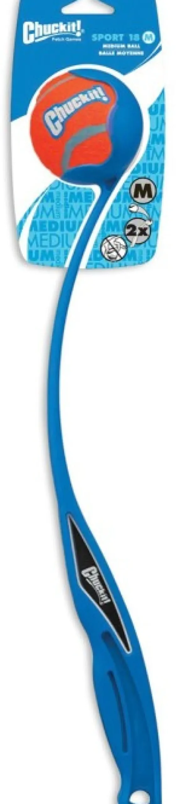 Lelu, joka vie noutoleikit uudelle tasolle! Chuckit! Sport Katapult on heittovarsi, jonka mukana tulee M-kokoinen pallo. Varresta saa hyvän otteen, ja väline mahdollistaa pitkät ja kontrolloidut heitot. Täydellinen aktiivisten koirien leikkeihin.