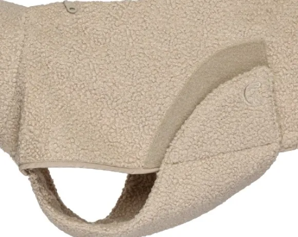 Mukava teddykankainen koirantakki, jossa on erittäin lämmin korkea kaulus, erittäin pehmeä sisävuori ja vetoketjullinen aukko valjaille. Yksilöllinen istuvuus tarranauhojen ansiosta.