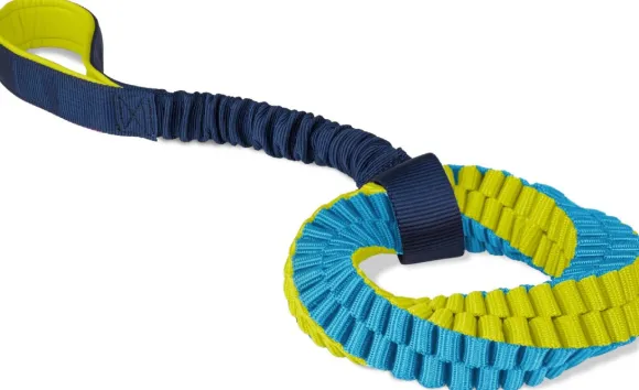 Koiranlelu uudella innovatiivisella muotoilulla. Se on kevyt, uskomattoman kestävä ja siinä on erittäin vahva jousto-osio ja pehmeä neopreenikahva. Jouston ansiosta lelu on hellävarainen sekä koiralle että ihmiselle.