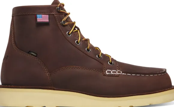 Bull Run Moc Toe 6" -kengässä on täysin vedenpitävä GORE-TEX-päällyste ja nahkapäällinen, joka yhdistää täydellisesti kestävyyden ja pehmeyden. Yhdessä Danner Wedge -ulkopohjan kanssa tämä tekee kengästä mukavan käyttää koko päivän.