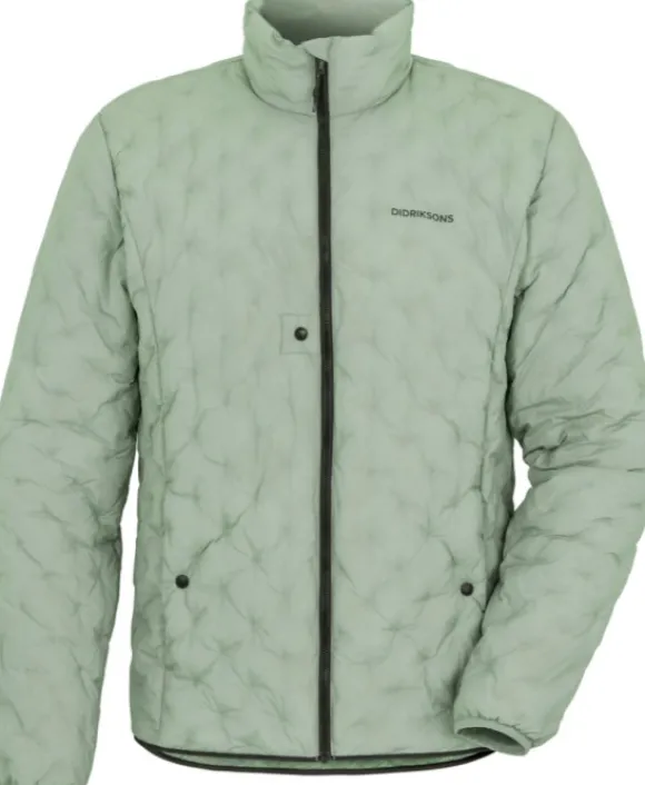 Vuorellisessa Didriksons Darius -takissa on hieno, tikattu kuviointi. Takkia sopii käyttää sellaisenaan päällystakkina tai eristävänä kerroksena esimerkiksi kuoritakin alla. Vettähylkivä takki on Regular fit -mallia ja leikkaukseltaan suora. Darius-takissa on täyspitkä vetoketju etupuolella. Vetoketjun vieressä on myös nappi, joka mahdollistaa tehokkaan ilmanvaihdon tarvittaessa. Sivutaskut ovat niin ikään napilliset ja sisätaskuja on kolme, joista kaksi avoimia ja yksi vetoketjullinen. Vuori on valmistettu kierrätetyistä kuiduista. Vettä hylkivä, PFC-vapaa käsittely.