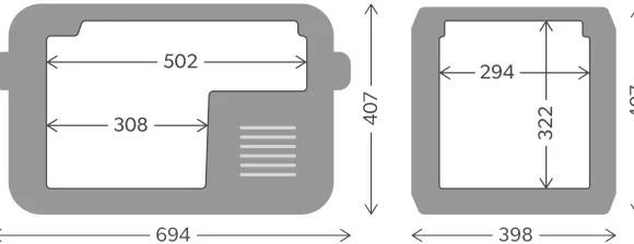Sisältää: 1 kylmälaukku, 1 käyttöopas, 1 liitäntäkaapeli 12/24V-liitäntään, 1 liitäntäkaapeli 100-240V-liitäntään, irrotettavat lankakorir