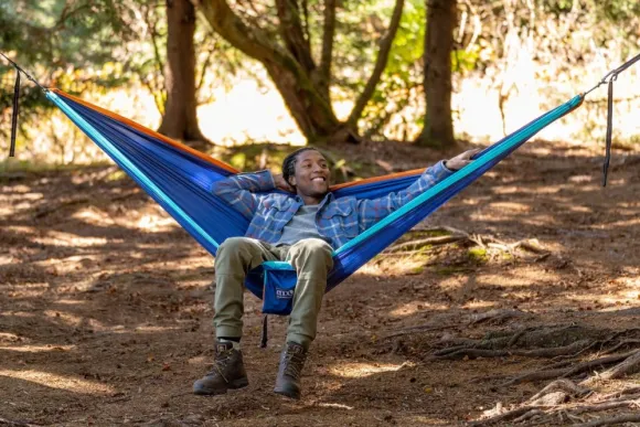 DoubleNest -riippumatto on riittävän suuri kahdelle ja erittäin tilava yhdelle, mutta on kuitenkin pieneen tilaan pakkautuva. Helppo ja nopea asentaa! Paino vain 539 grammaa.