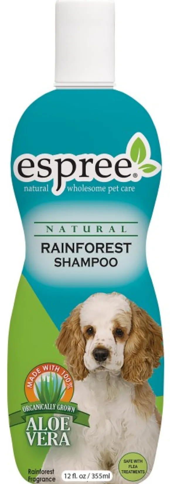 Espree Rainforest shampoo on yleisshampoo, joka sopii useimmille turkkityypeille. Shampoolla on syväpuhdistava ja hieman takkuja poistava vaikutus, samalla kun se antaa tuuheutta, täyteläisyyttä ja kiiltävää loistoa turkille. Kauraproteiini tekee ihmeitä ihon kimmoisuudellle ja turkin laadulle. Parhaan mahdollisen tuloksen saamiseksi yhdistä Rainforest Conditioner -hoitoaineeseen. Laimennus 1 osa shampoota, 16 osaa vettä. Ravista hyvin. Turvallinen yli 6-viikkoisille kissan- ja koiranpennuille.