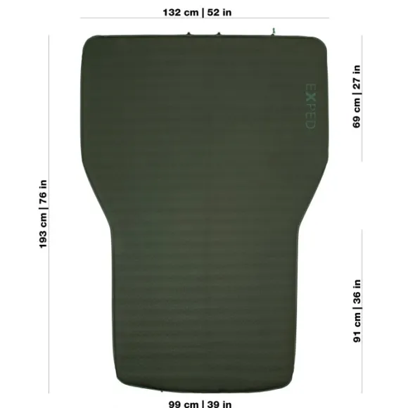 Exped MegaMat Auto on erityisesti ajoneuvokäyttöön suunniteltu makuualusta. Sen erityinen muoto, jossa on leikkaukset sivuilla, tekee siitä täydellisen ratkaisun auton muuttamiseksi matkailuautoksi.