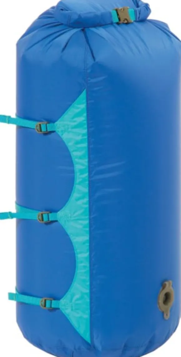 Exped Waterproof Compression Bag on vedenpitävä pakkauspussi, jossa on ilmaventtiili sekä vertikaaliset kompressioremmit. Pakkauspussin avulla tavarat on helppo pakata tiiviisti reppuun, ja ilmaventtiilin sekä säädettävien remmien avulla tiivistys käy kätevästi. Pussin yläosassa on kätevä rullasulku, jota voi käyttää kädensijana tai kiinnityslenkkinä. Kompressiopussitoimii myös Exped-makuualustan pumppuna yhdessä Schnozzelin kanssa.