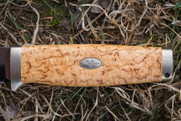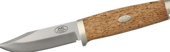 Mistä tunnistaa ruotsalaisen puukon? Esimerkiksi sen suorasta muodosta, joka mahdollistaa useiden työtehtävien suorittamisen ja tuntuupa vielä kätevältä kädessä. Veitsen terän tulee olla laadukkaasta terästä, kahvan tuntua hyvältä kädessä ja nahkatupin olla todella laadukas. Sen lisäksi veitsen tulee olla kestävä ja pysyä terävänä pitkään. Fällknivenin käsintehty Jarl (SK1) täyttää nämä vaatimukset. Laminoitu jauheteräksestä valmistettu terä on todella kestävä ja pysyy terävänä pitkään. Kahva on valmistettu kauniista visakoivusta.