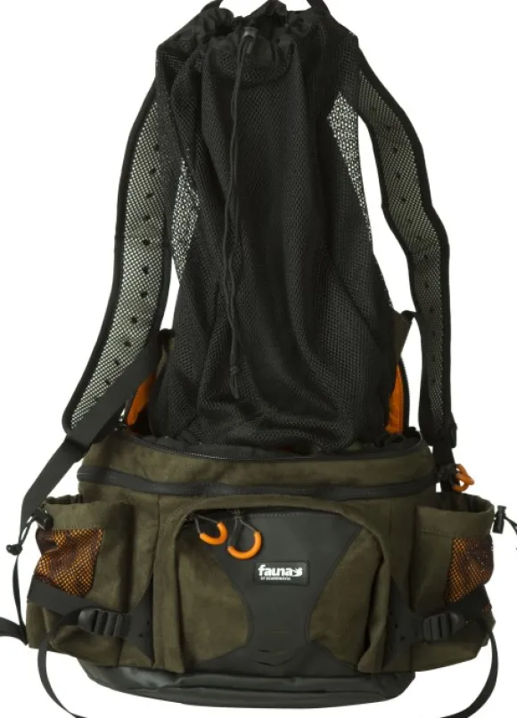 Fauna F12 Hip on käytännöllinen, riistapussilla varustettu vyölaukku lyhyille metsästysretkille. Vyölaukkuun mahtuu helposti kaikki, mitä tarvitset aamu- tai iltapäiväreissulle. Laukkuun on sisäänrakennettu käytännöllinen riistapussi, jossa on olkaimet. Riistapussin voi irrottaa ja pestä.