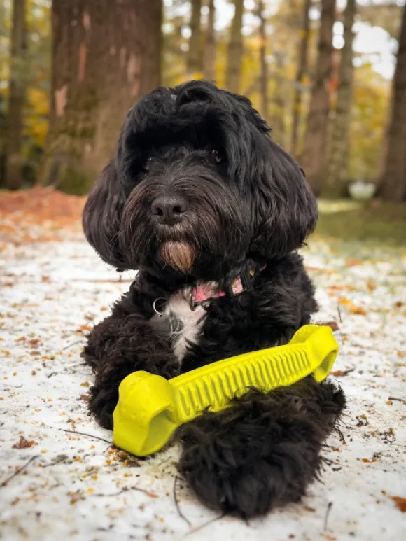 Tämä koiranlelu on kestävä ja kelluu vedessä. Se on saatavana useissa kirkkaissa väreissä. Tämän lelun pituus on 19 cm.