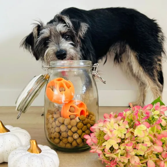 Monikäyttöinen koirien aktivointipallo toimii myös tavallisena pallona. Pallon koko vastaa tennispalloa. Palloon voidaan piilottaa herkkuja. Hiljainen pallo ei pidä ääntä käytössä.