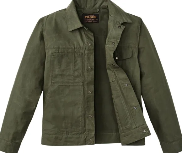 Vuorittamaton lantiopituinen miesten takki vahatusta puuvillasta – ikoninen työtakki ja yksi Filsonin myydyimmistä vaatteista