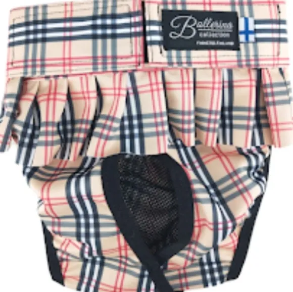 BALLERINA-housuissa on leveä vyötärönauha, jossa on tarrakiinnitys, joka avautuu molemmilta puolilta tehden niiden pukemisesta helppoa. Hännänaukko on suunniteltu sopimaan sekä pitkille että pitkäkarvaisille hännille. Laskostetussa hamepaneelissa on laserleikattu pitsikuvio.