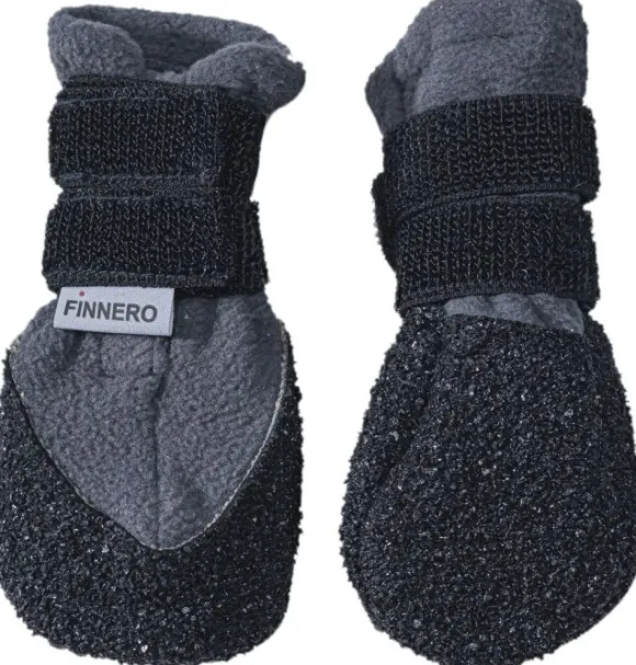 Jos koiralla on liian terävät tai pitkät kynnet, tossut voivat vahingoittua tai aiheuttaa epämukavuutta käytön aikana. Huomioi myös, että fleecemateriaali ja pohja kuluvat, kun koira kävelee kovilla ja terävillä pinnoilla, kuten hiekalla, mukulakivillä, hiekoitushiekalla, asfaltilla tai jäisellä lumella.