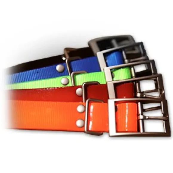 Garminin kestävä kaulapanta on valmistettu nailonista, ja se on pinnoitettu polyuretaanilla vedenkestävyyden takaamiseksi. Yhden tuuman (2,54 cm) levyinen panta sopii säätövaransa ansiosta useimmille koirille. Pannan pituus on 68,58 cm. Solki on nikkelöity ja pannan väri oranssi.