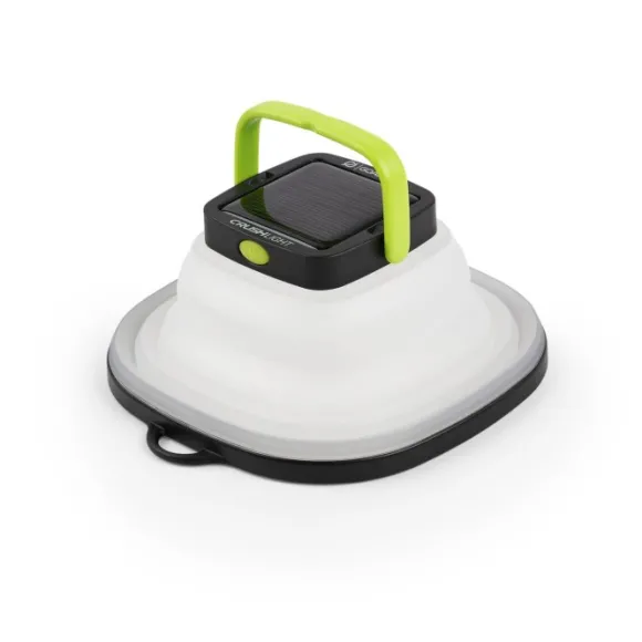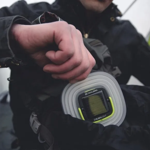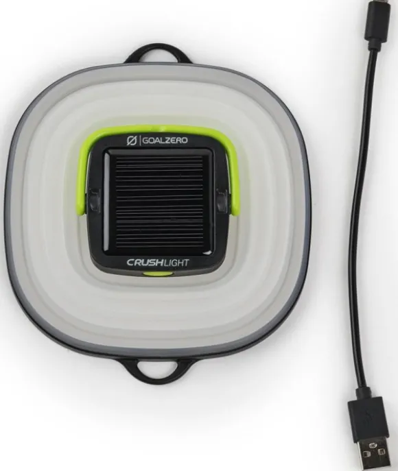 Goal Zero Crush Light on uudelleenladattava ja litistettävä lyhty sisäänrakennetulla aurinkopaneelilla.