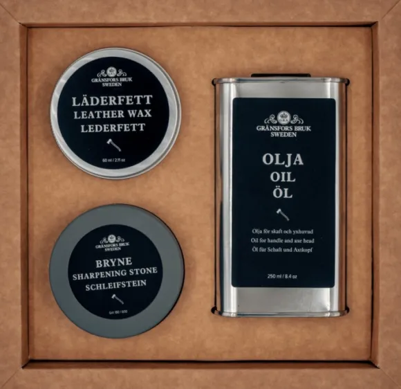 Gränsfors Hoitokitti sisältää kaiken tarvittavan, jotta suosikkikirveesi pysyy hyvässä kunnossa. Kun huolehdit Gränsfors-kirvestäsi ja annat sille vähän ekstrahuomiota, se kestää monia vuosia eteenpäin.
