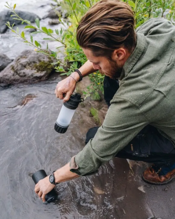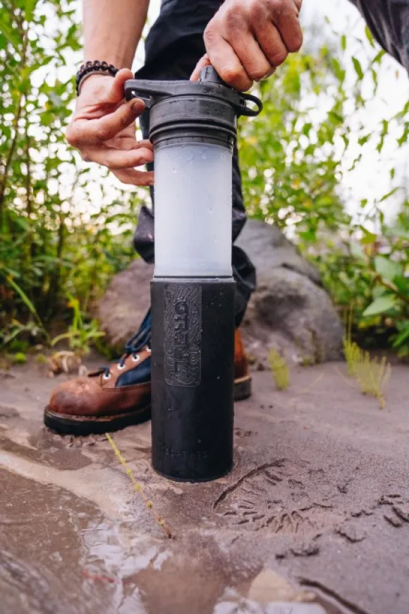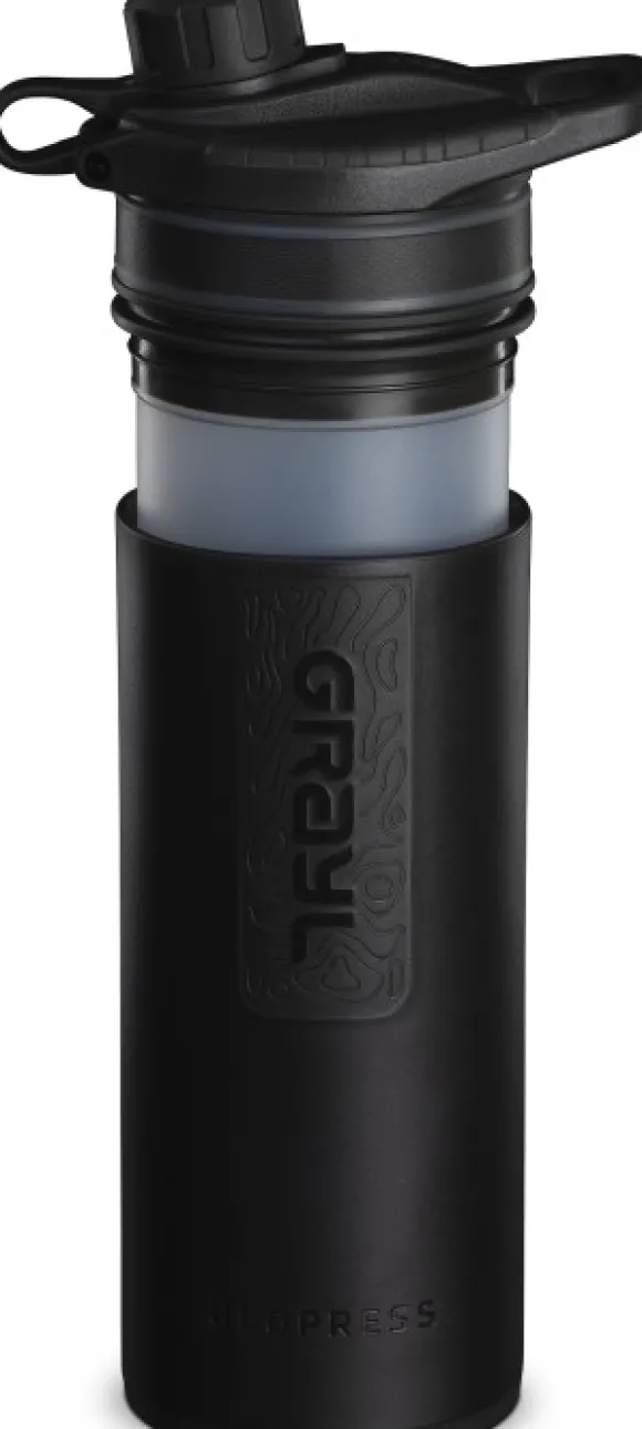 Graylin Geopress™ Purifier on pullo, joka puhdistaa ja suodattaa vettä. Pullo puhdistaa veden vedessä leviävistä taudinaiheuttajista (kuten viruksista ja bakteereista) ja suodattaa pois hiukkaset, kuten sedimentin ja mikromuovin. Harvat vettä puhdistavat pullot voivat kilpailla GeoPressin nopeuden, yksinkertaisuuden ja tehokkuuden kanssa! Vain kahdeksassa sekunnissa se puhdistaa ja suodattaa 710 ml vettä.